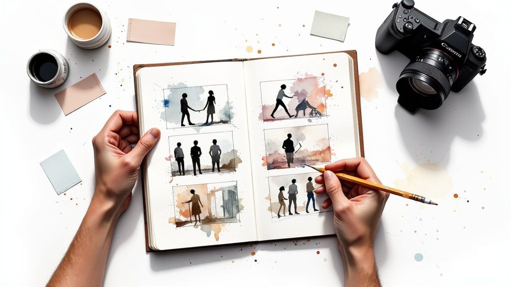Think of storyboarding as one of the most powerful visual storytelling techniques in your toolkit. Each little square you draw isn't just a sketch; it's a command for the camera operator and a cue for your talent.