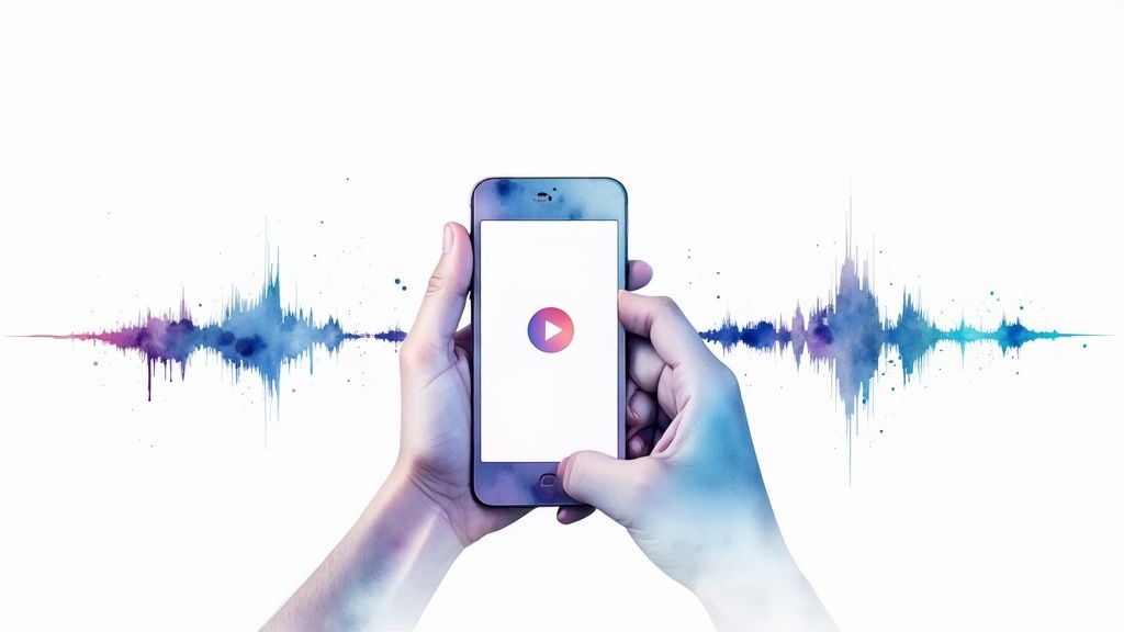 A podcaster could grab a powerful 60-second quote from an episode and spin it into a killer audiogram. Think dynamic waveform, bold captions—the whole package. That little clip becomes the perfect teaser for Instagram Reels or TikTok, driving new subscribers back to the full episode.