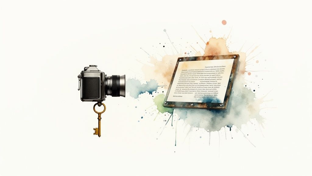 At its simplest, it’s the process of turning all the spoken words in a video into a written text document. Think of it this way: your video is like a locked book. It’s full of great ideas, but search engines can’t read it, and many people can't access it. Transcription is the key that unlocks that book, transforming dialogue into powerful, searchable content.